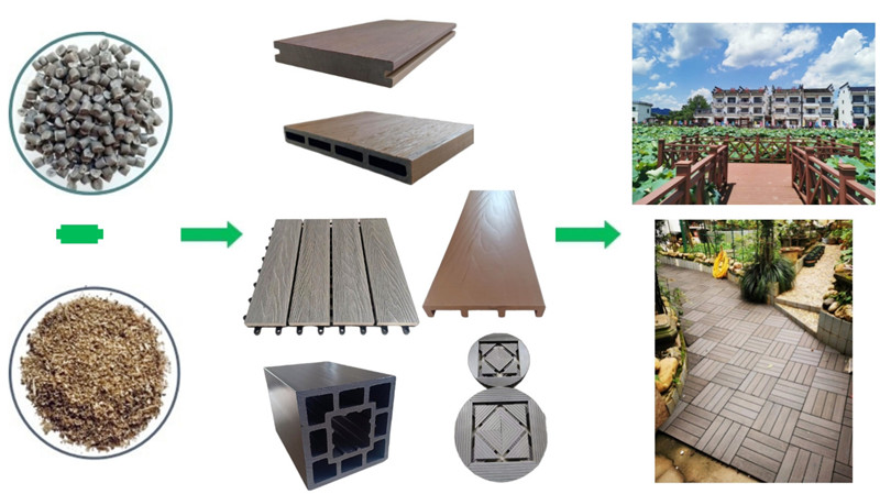 塑木材料又被稱(cheng)為合成(cheng)木材,是利用聚(ju)乙(yi)烯、聚(ju)丙(bing)烯和聚(ju)氯(lv)乙(yi)烯等(deng)代(dai)替(ti)常(chang)用的(de)樹脂(zhi)膠粘劑,與廢棄木角(jiao)料、秸(jie)稈、大豆(dou)皮 以(yi)及甘蔗渣等廢植物纖(xian)維混(hun)合加工(gong)得(de)到的(de)生物質復合材料,是經擠壓、模壓、注塑等加工(gong)工(gong)藝產出(chu)的(de)具有一定強度的(de)板材。因其(qi)主要成(cheng)分是木(mu)粉和(he)塑料,所(suo)以(yi)稱之(zhi)為塑木(mu)材料,塑木(mu)源于生活(huo),歸于生活(huo),其(qi)應用于大量(liang)建筑景觀場所(suo)。